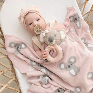 Living Textiles Australiana Baby Blanket - Koala/Blush - NEW